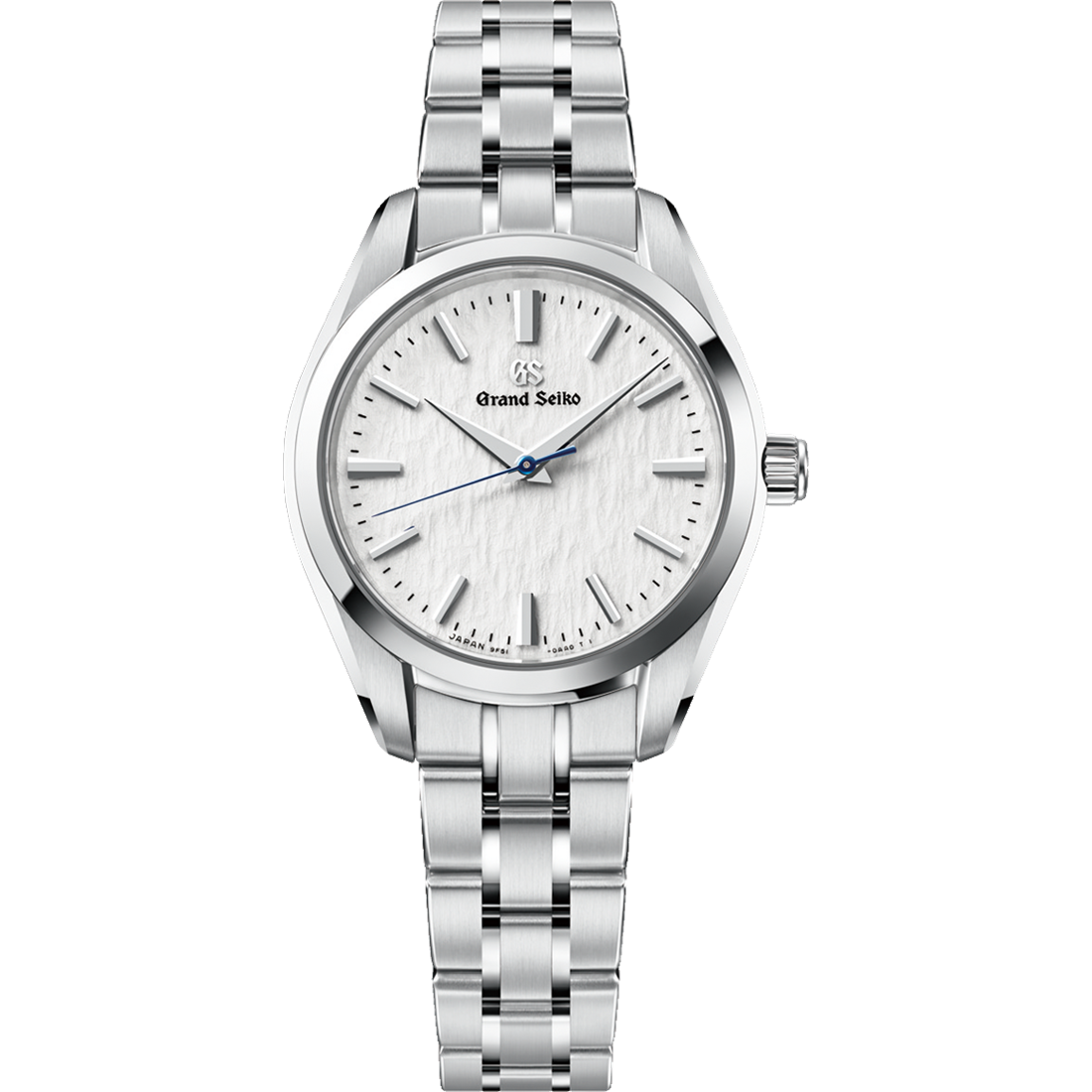 SBGX359 carries forward the Snowflake dial, a design that has been part of Grand Seiko’s story since 2005. Its softly textured white surface reflects the snow-covered peaks of Nagano Prefecture, where Grand Seiko Spring Drive and quartz watches are created. Rather than relying on white paint, the dial achieves its appearance through a carefully controlled process combining silver plating, clear coating, and precise finishing. Subtle variations in depth allow light to play across the surface, evoking the quiet movement of freshly fallen snow. Against this bright field, the tempered blue seconds hand offers a vivid contrast, echoing the crisp air of a winter morning.
